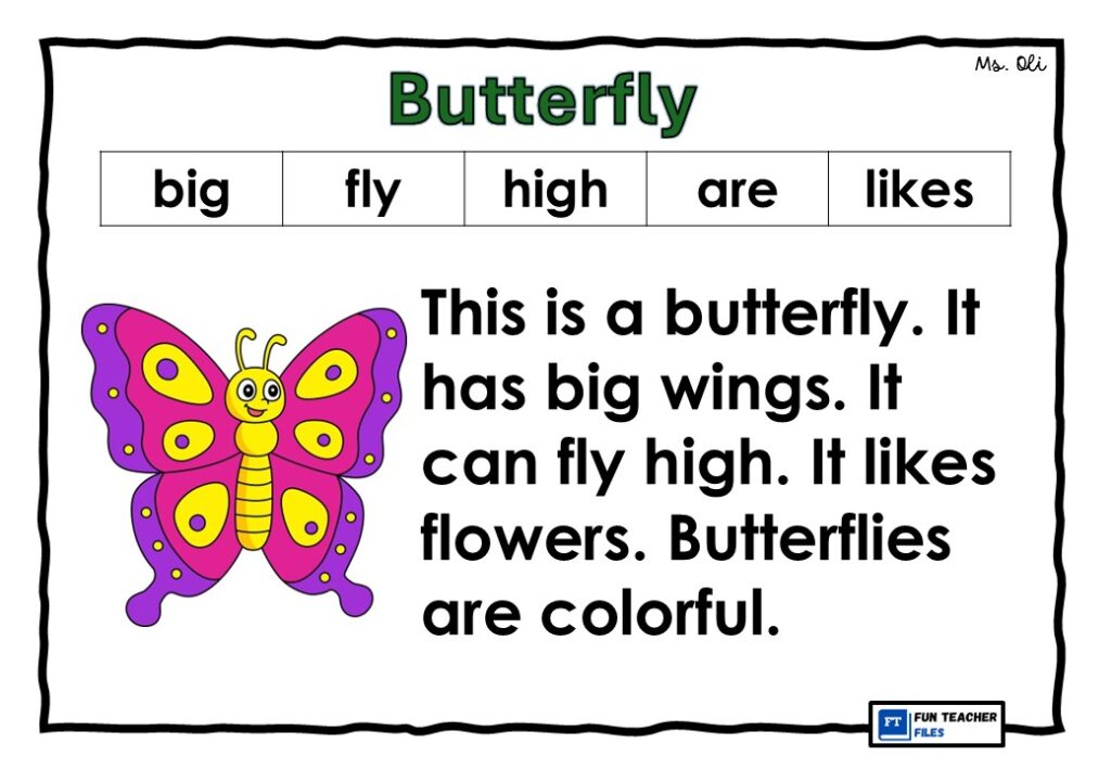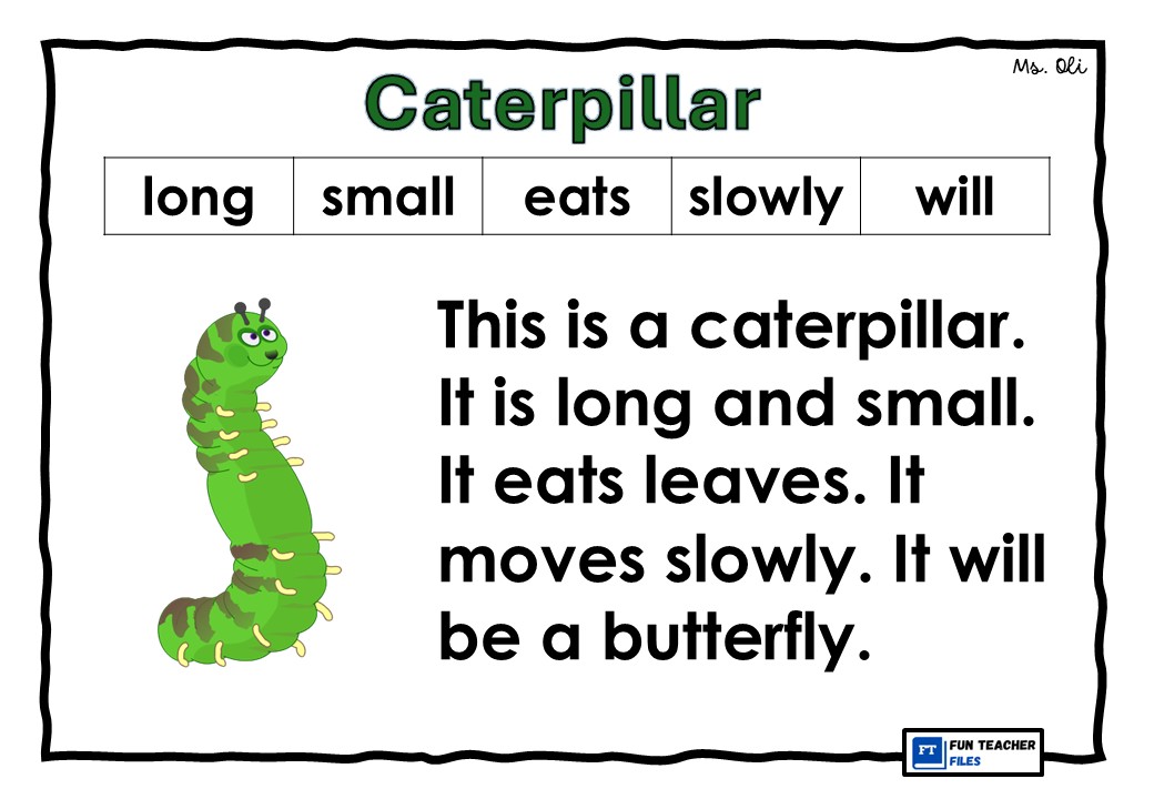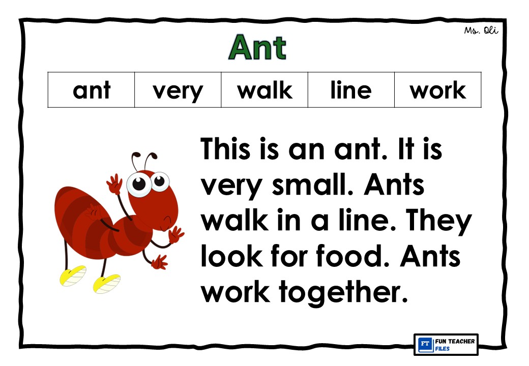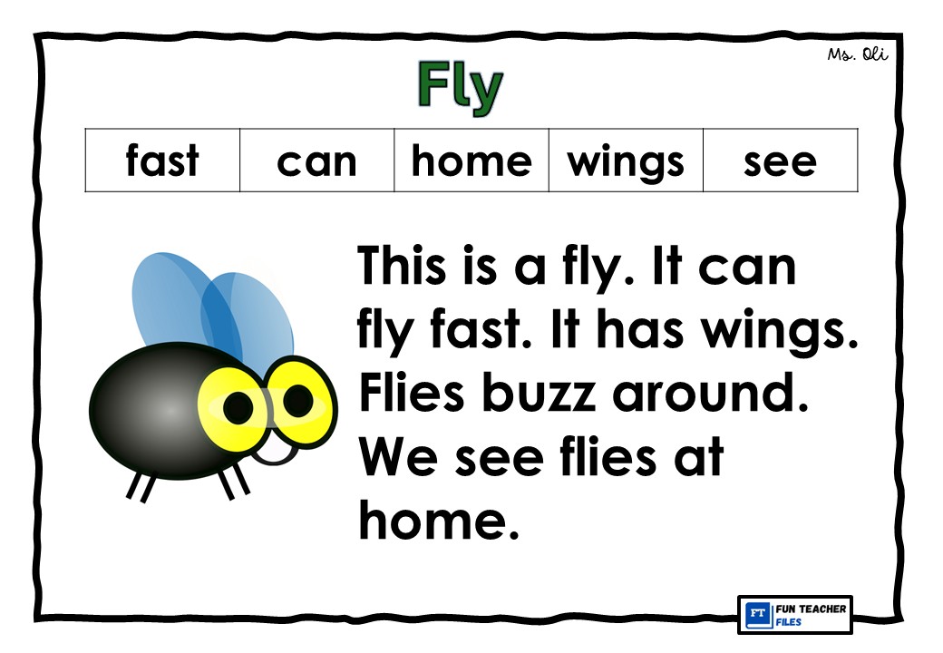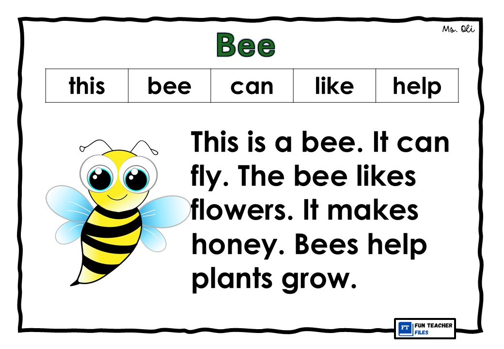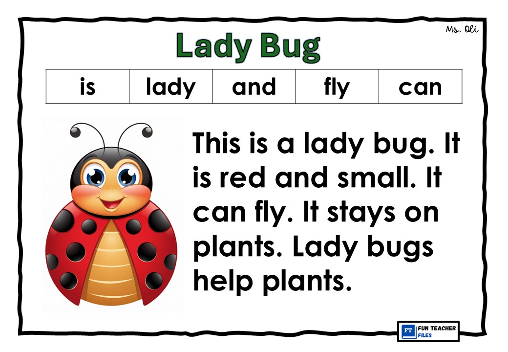 Practice reading through this set of FREE English Reading Passages for kids. This set of reading materials includes passages with images, basic sight words and high frequency words. This set of reading passages is about insects which include the following: Bee, Ant, Lady Bug, Fly. Caterpillar and Butterfly.