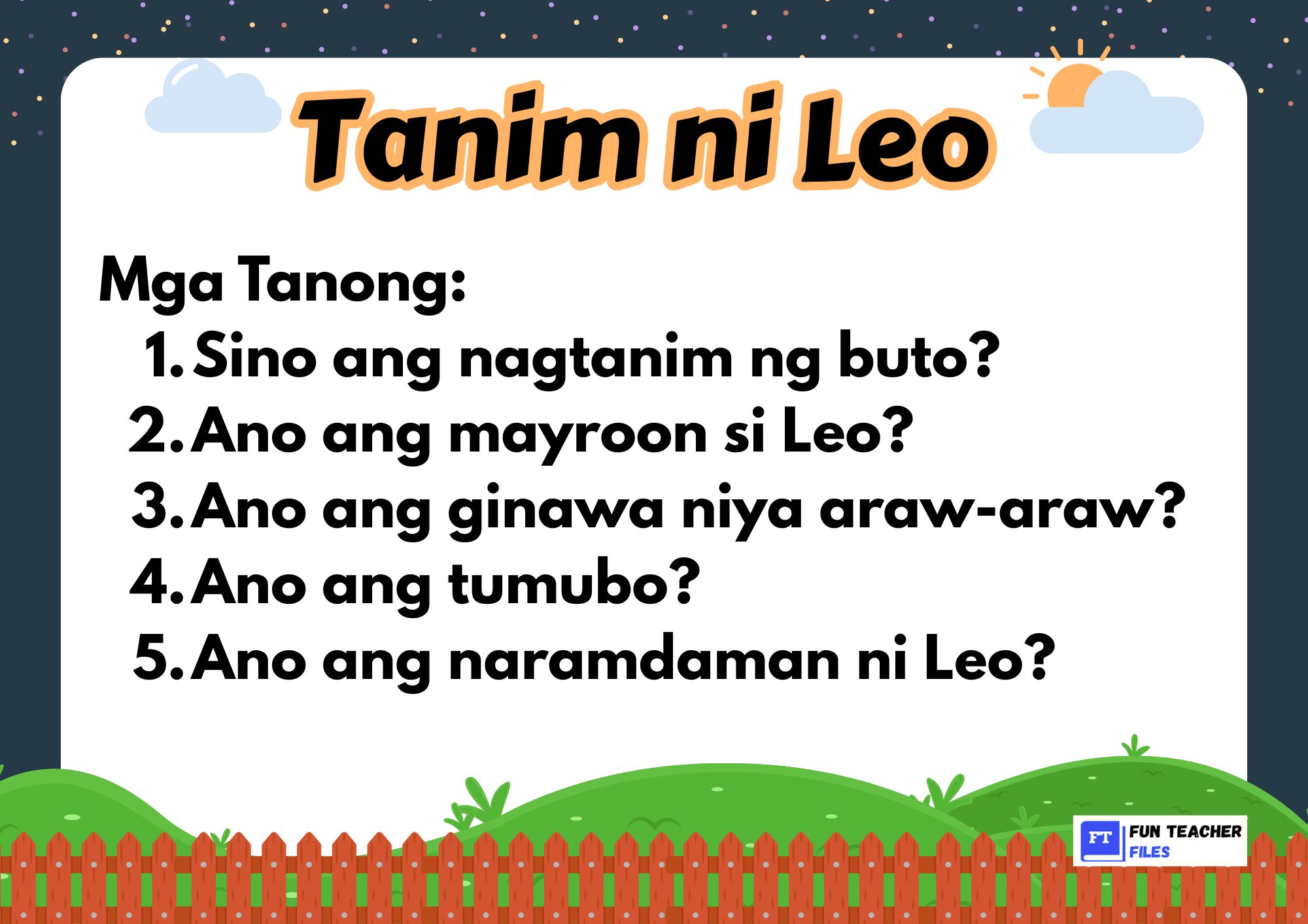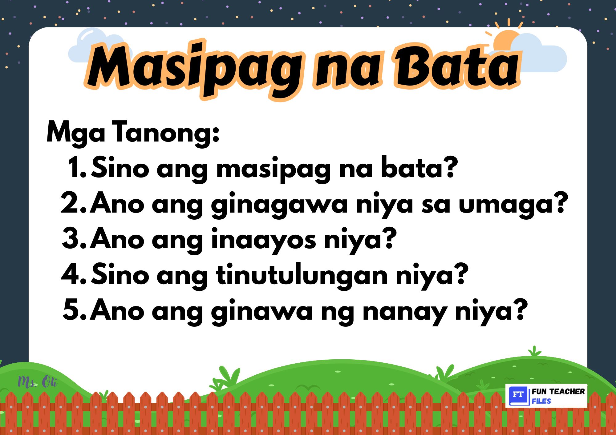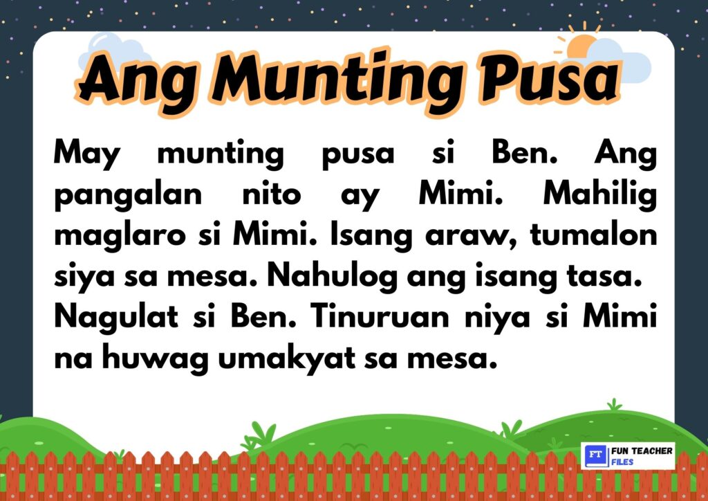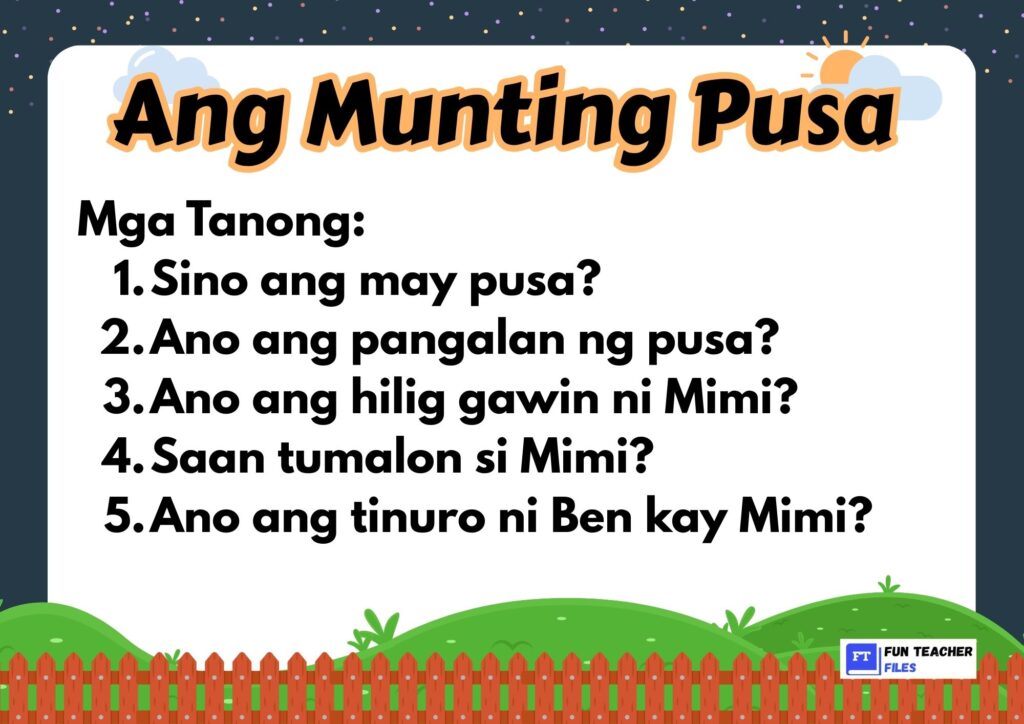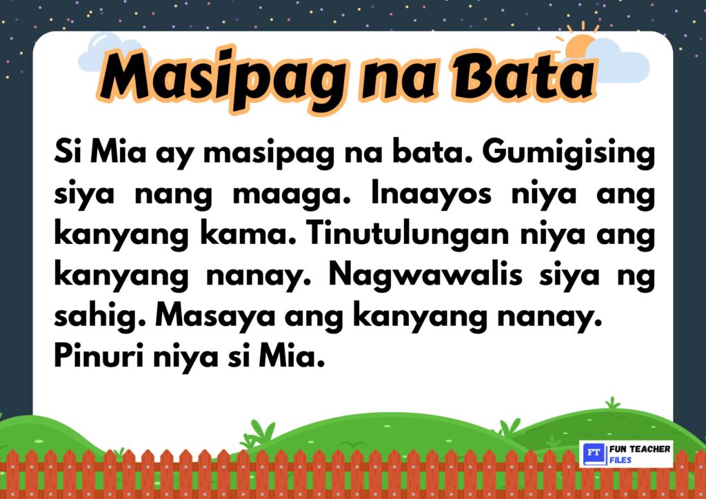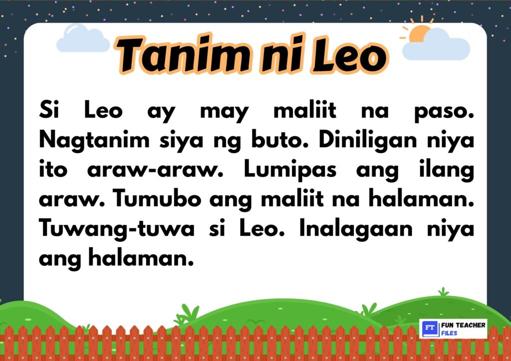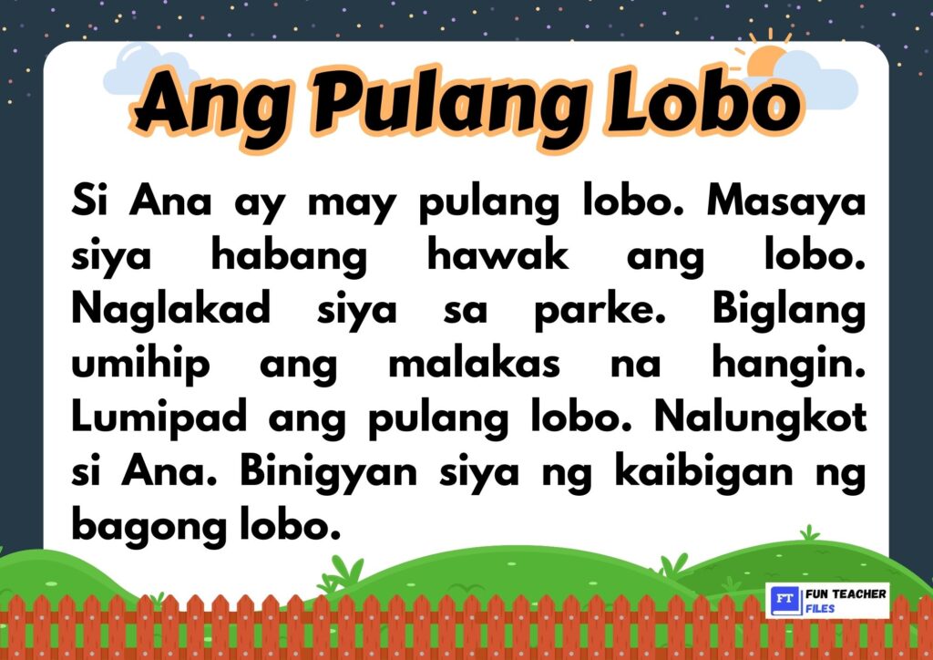 Check out this set of Filipino Reading Materials with Comprehension Questions. This set of materials aim to practice both decoding and understanding written text by answering the comprehension questions that follow.