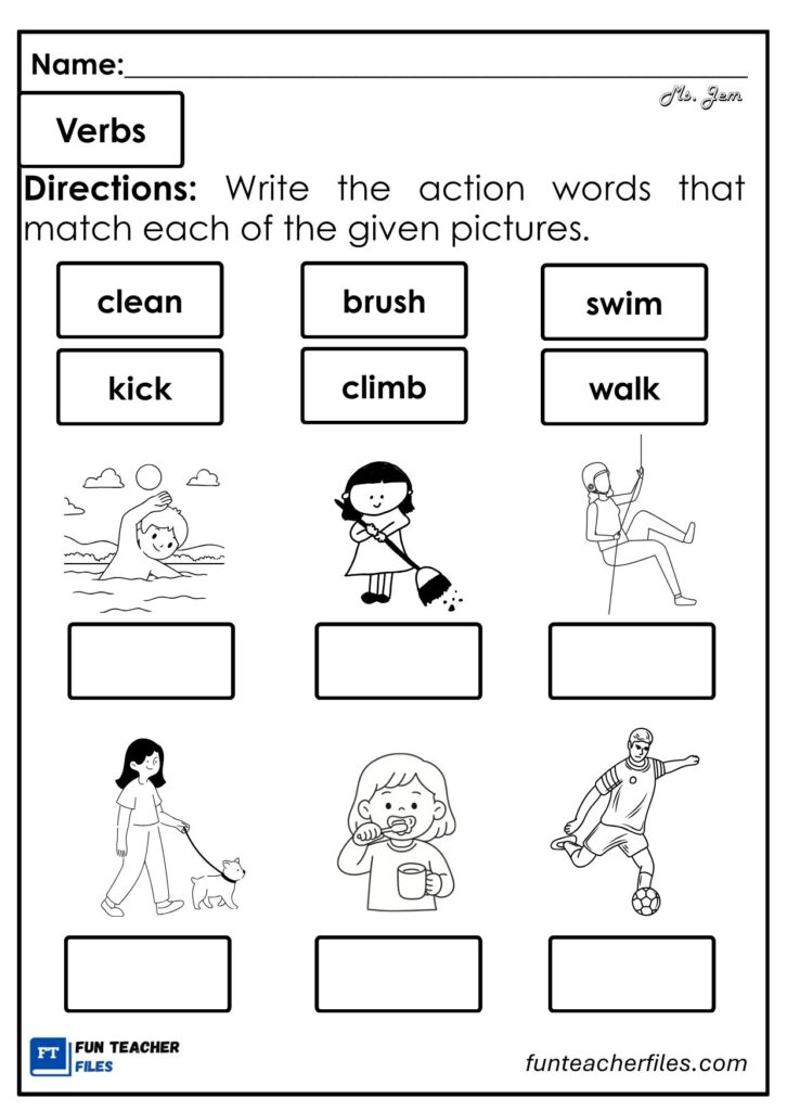 Directions: Write the action words (verbs) that match each of the given pictures.