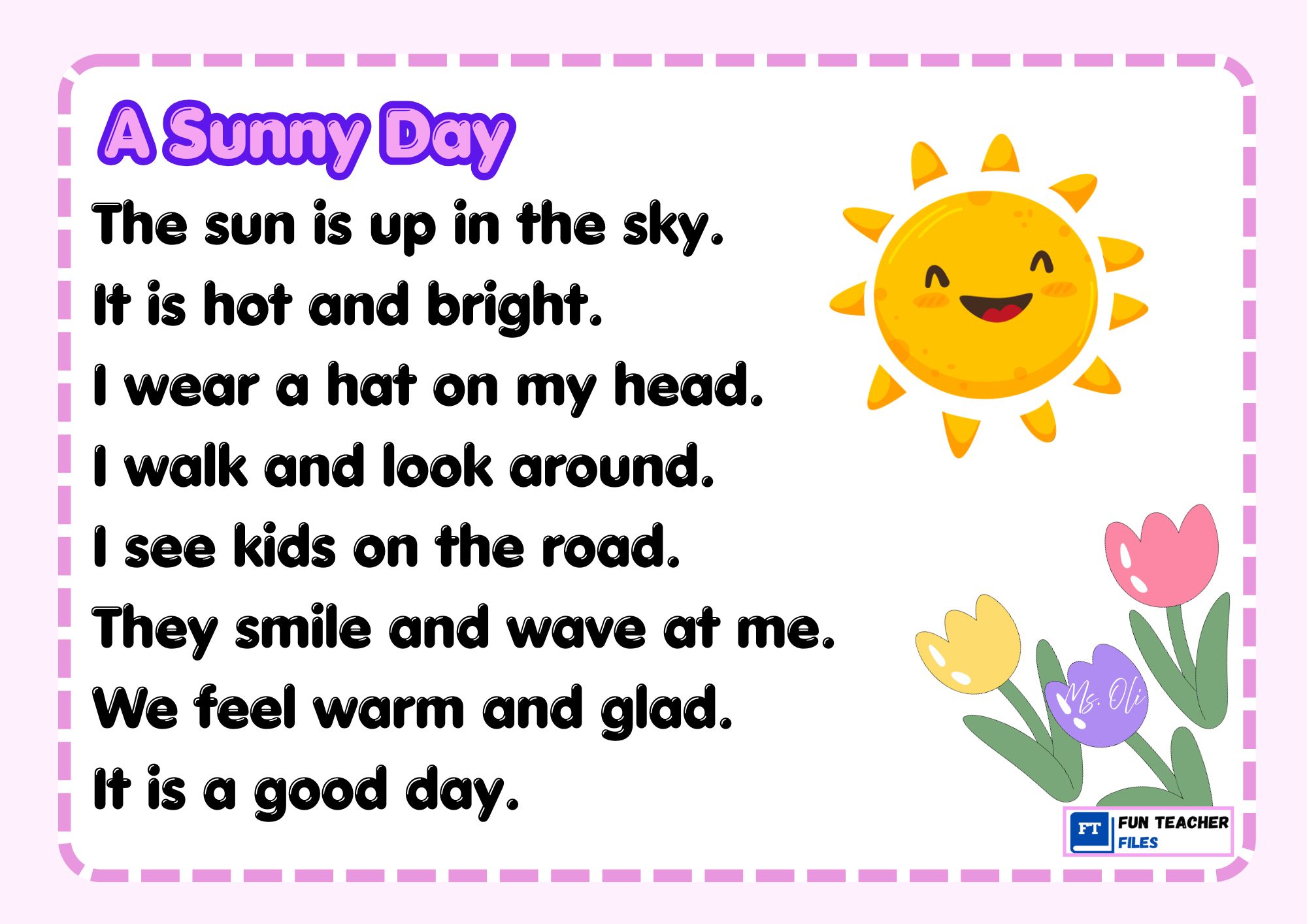 Fun Teacher Files is a website that provides both learners and teachers with educational materials to improve literacy and numeracy. These FREE and downloadable educational resources can hep learners, parents and teachers all around the world in learning and teaching pre-school and grade school concepts. Images used are from free sources. Posters, flashcards, reading materials and worksheets are great for blended learning (online class, classroom-based and homeschooling). However, these educational materials are NOT for COMMERCIAL USE. Thank you for visiting this website. Happy Teaching and Learning from Fun Teacher Files!