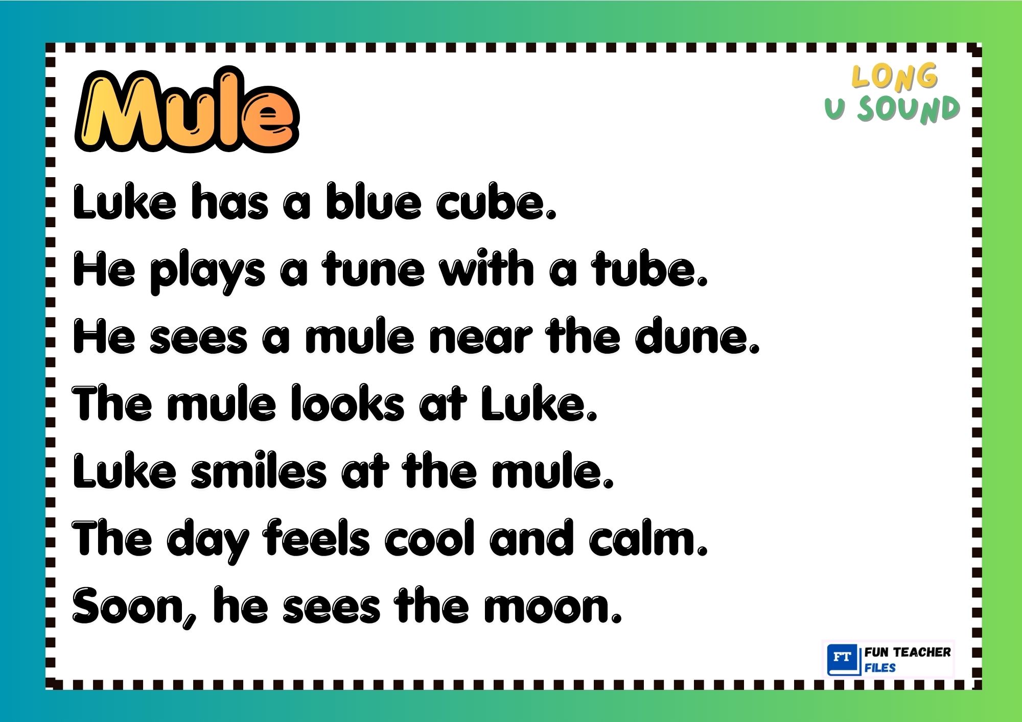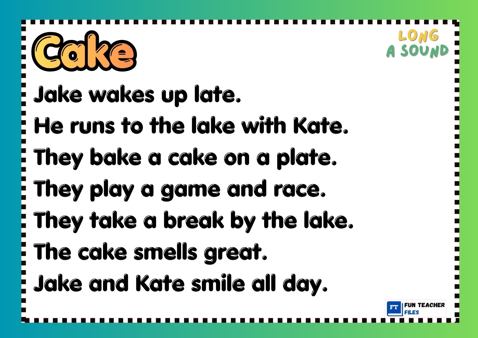 Long vowel sounds are pronounced like the letters of the alphabet. We see these long vowels in words like cake, bike, eat, nose and mule . They are called long vowel sounds because we hold them for longer than the short sounds. Here are reading passages with long a, long e, long i, long o and long u vowel sound words.
