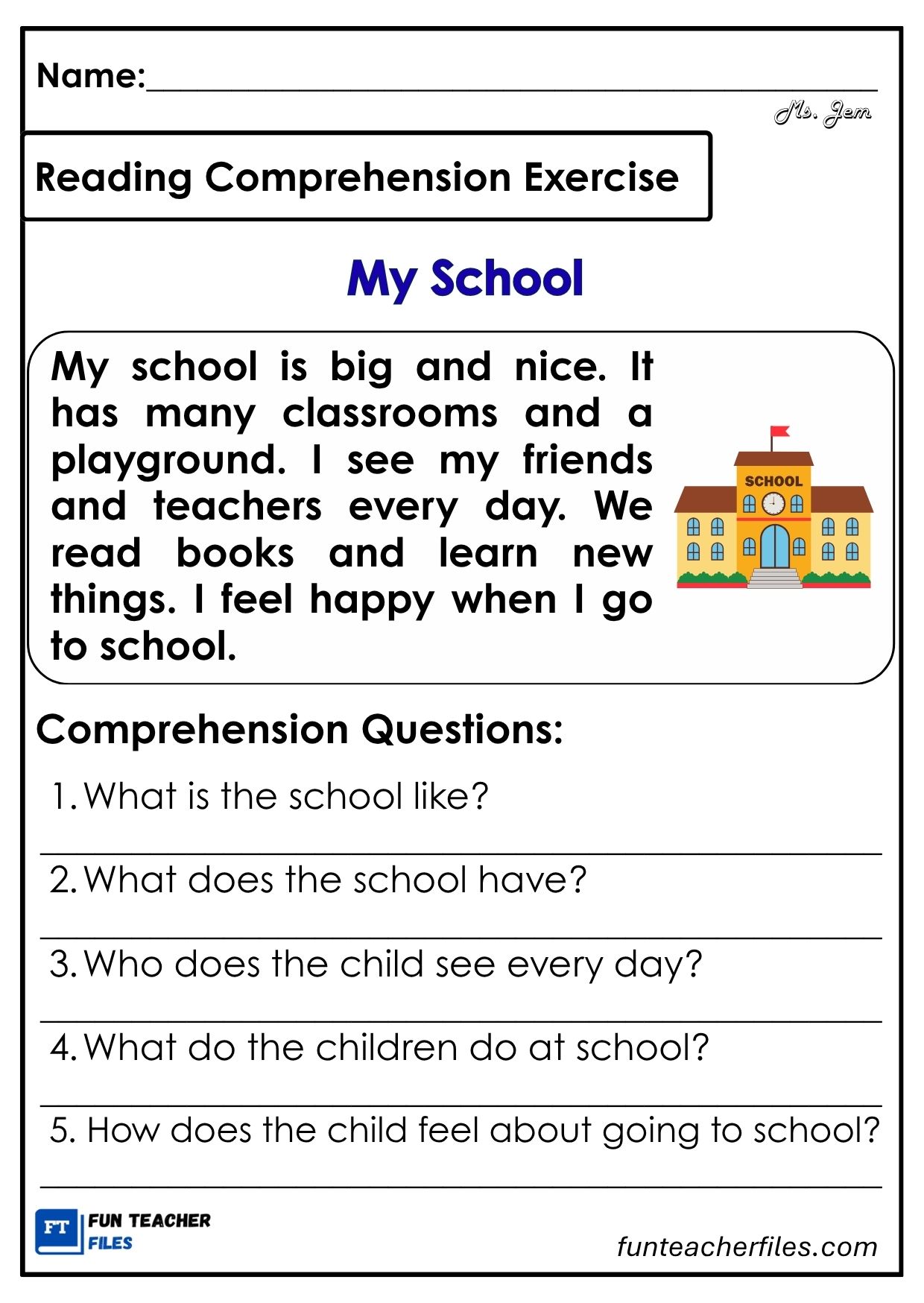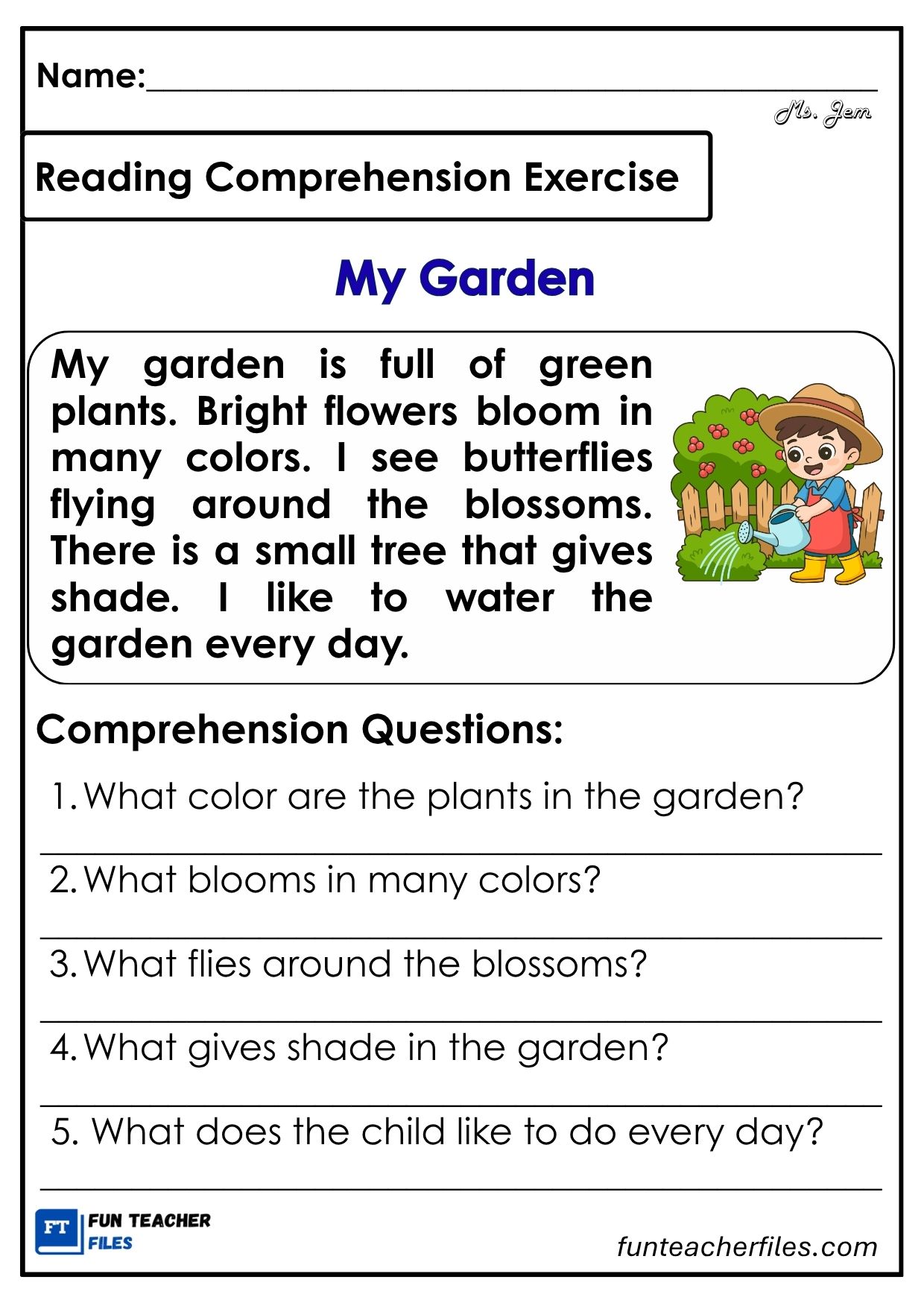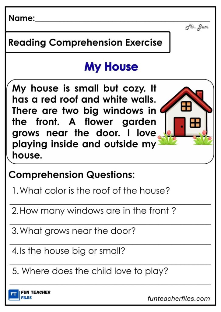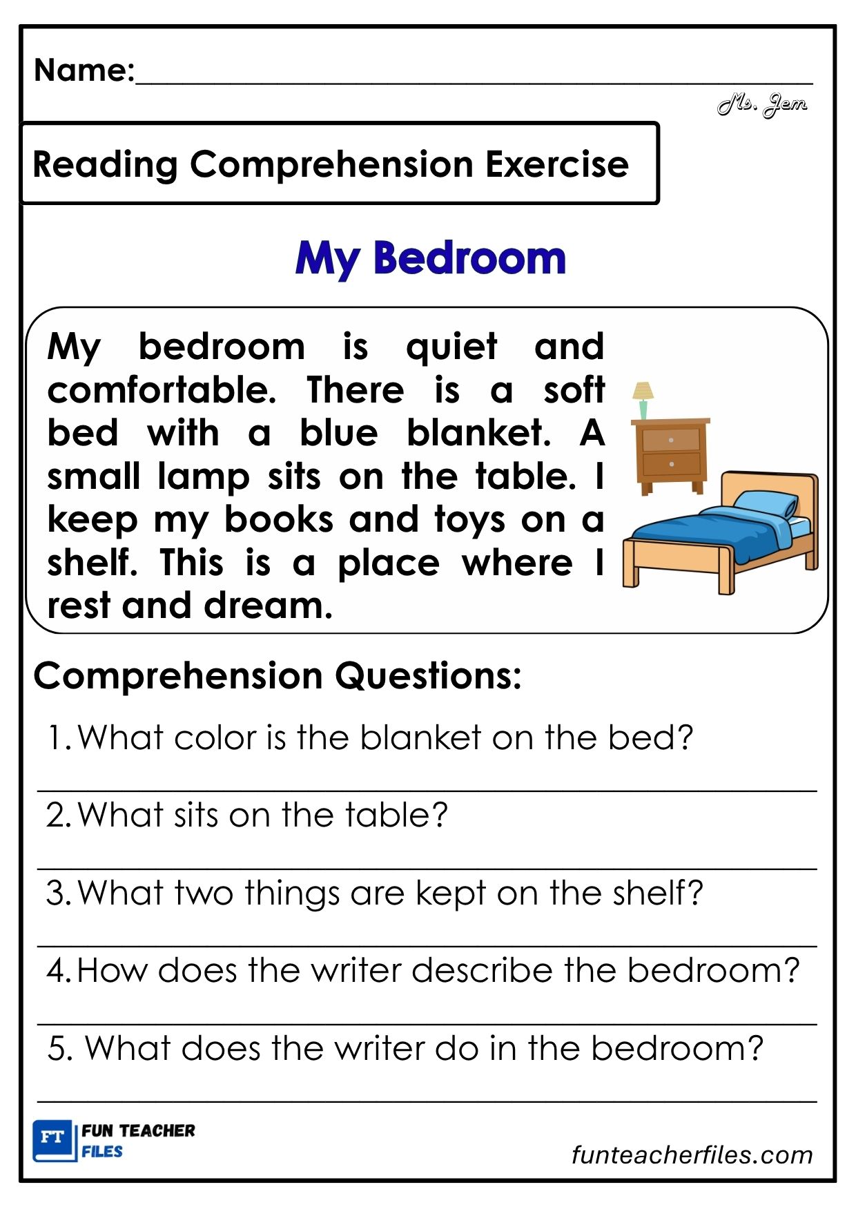 Reading Comprehension Exercises Set 10 focuses on familiar and meaningful places in a learner’s everyday life—such as the school, house, garden, and bedroom. These settings help readers connect more easily with the text, making comprehension both engaging and relatable. By exploring passages about common environments, learners can strengthen their understanding of vocabulary, context, and main ideas while building confidence in reading. This set is designed to support students in developing essential comprehension skills through simple, enjoyable, and real-life themes.