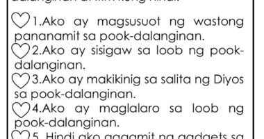 Wastong Gawi sa Loob ng Pook-dalanginan Worksheet 1